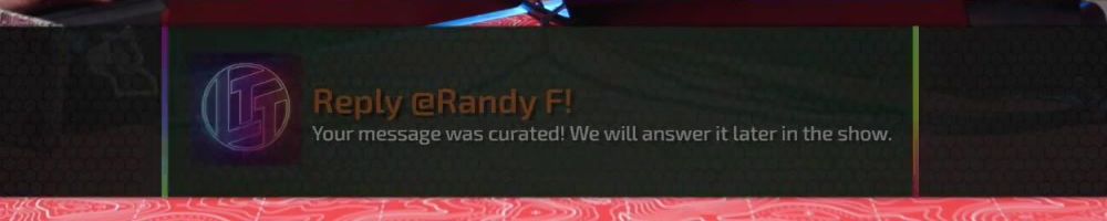Reply @Randy F! Your message was curated! We will answer it later in the show.