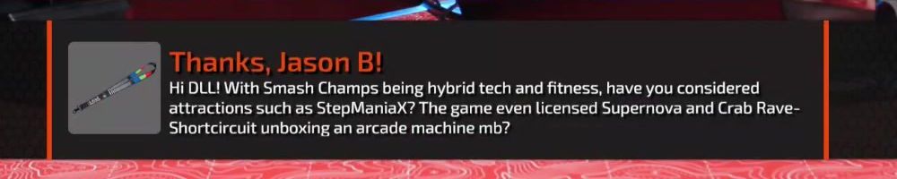 Thanks, Jason B! Hi DLL! With Smash Champs being hybrid tech and fitness, have you considered attractions such as StepManiaX? The game even licensed Supernova and Crab Rave- Shortcircuit unboxing an arcade machine mb?