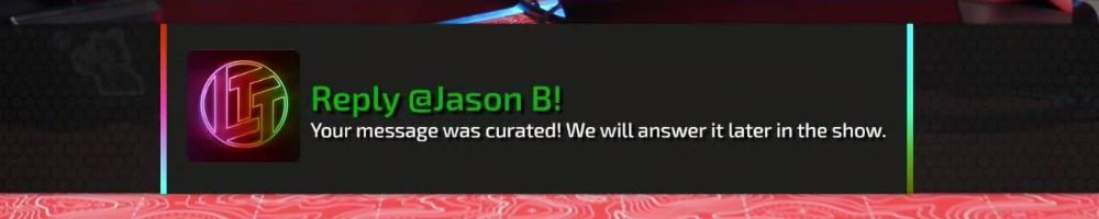 Reply @Jason B! Your message was curated! We will answer it later in the show.
