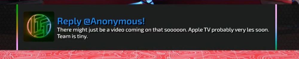 Reply @Anonymous! There might just be a video coming on that sooooon. Apple TV probably very les soon. Team is tiny.