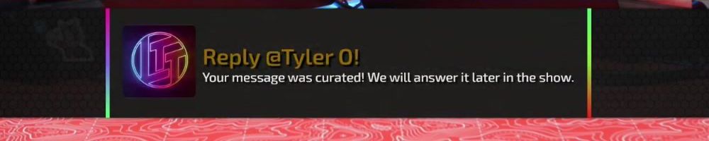 Reply @Tyler O! Your message was curated! We will answer it later in the show.