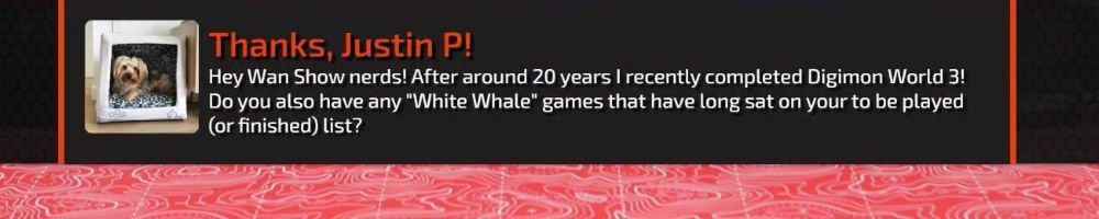 Hint: Use CTRL + F to search messages in this show, or use Whenplane's WAN Show Search tool to search for messages in all shows. Make sure that the "Merch Messages" box is checked when you search for something.