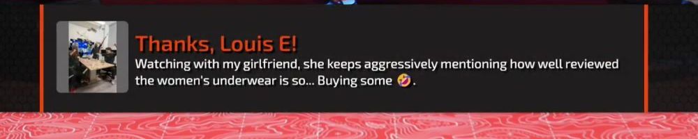 Thanks, Cody C! Hi LLD, when's more Women's Underwear? Also, Luke, you said avoiding news felt wrong—why? Any tips for balance? My wife follows it all, and I ignore it.