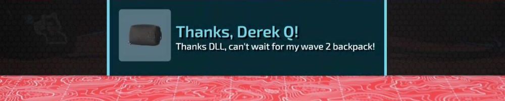 Thanks, Derek Q! Thanks DLL, can't wait for my wave 2 backpack!