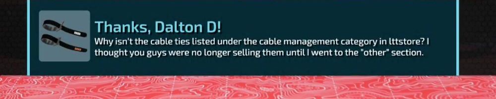 Thanks, Dalton D! Why isn't the cable ties listed under the cable management category in lttstore? I thought you guys were no longer selling them until I went to the "other" section.