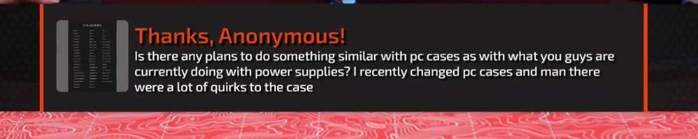Thanks, Anonymous! Is there any plans to do something similar with pc cases as with what you guys are currently doing with power supplies? I recently changed pc cases and man there were a lot of quirks to the case