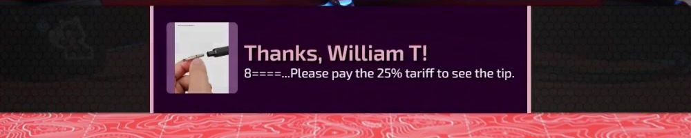 Thanks, William T! 8====...Please pay the 25% tariff to see the tip.