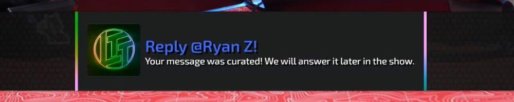 Reply @Ryan Z! Your message was curated! We will answer it later in the show.