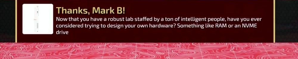 Now that you have a robust lab staffed by a ton of intelligent people, have you ever considered trying to design your own hardware? Something like RAM or an NVME drive