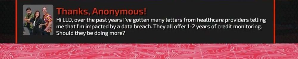 Hi LLD, over the past years I've gotten many letters from healthcare providers telling me that I'm impacted by a data breach. They all offer 1-2 years of credit monitoring. Should they be doing more?