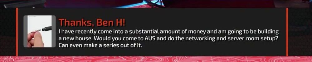 I have recently come into a substantial amount of money and am going to be building a new house. Would you come to AUS and do the networking and server room setup? Can even make a series out of it.