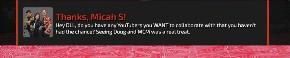 Hey DLL, do you have any YouTubers you WANT to collaborate with that you haven't had the chance? Seeing Doug and MCM was a real treat.