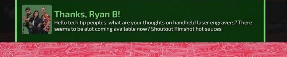 Hello tech tip peoples, what are your thoughts on handheld laser engravers? There seems to be alot coming available now? Shoutout Rimshot hot sauces
