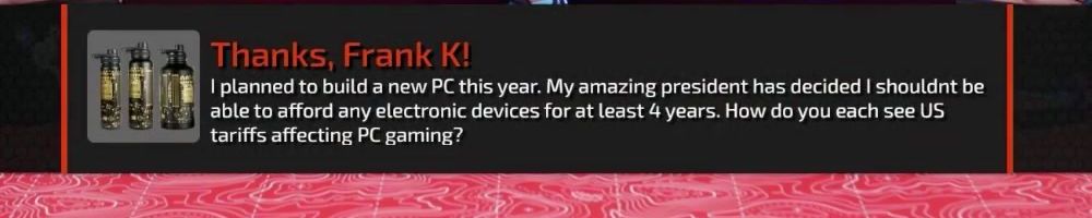 I planned to build a new PC this year. My amazing president has decided I should be able to afford any electronic devices for at least 4 years. How do you each see US tariffs affecting PC gaming?