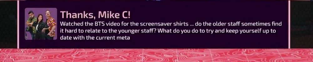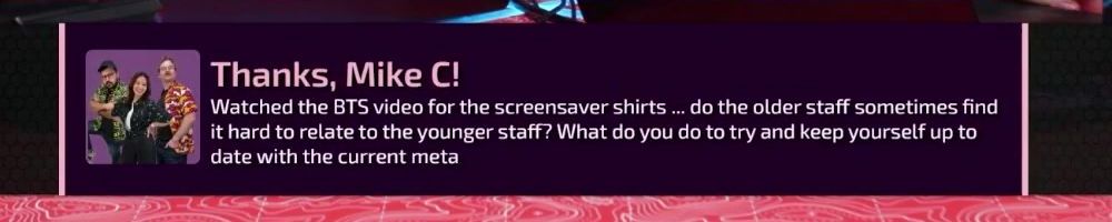 Watched the BTS video for the screensaver shirts ... do the older staff sometimes find it hard to relate to the younger staff? What do you do to try and keep yourself up to date with the current meta