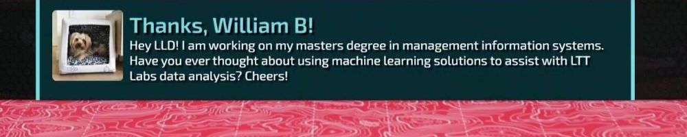 Hey LLD! I am working on my masters degree in management information systems. Have you ever thought about using machine learning solutions to assist with LTT Labs data analysis? Cheers!