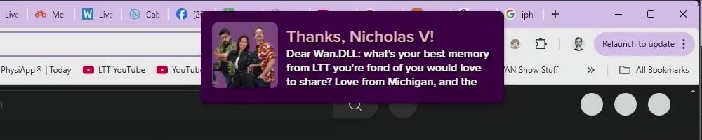 Hint: Use CTRL + F to search messages in this show, or use Whenplane's WAN Show Search tool to search for messages in all shows.