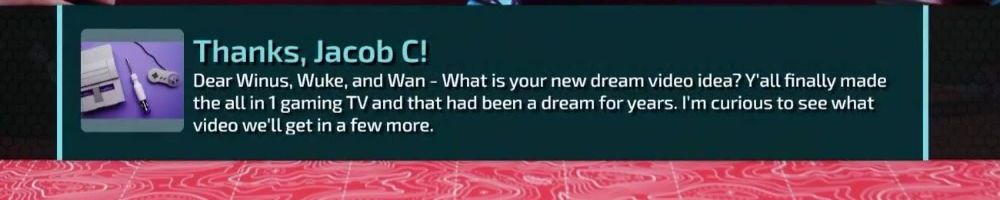 Dear Winus, Wuke, and Wan - What is your new dream video idea? Y'all finally made the all in 1 gaming TV and that had been a dream for years. I'm curious to see what video we'll get in a few more.