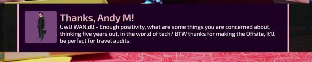thinking five years out, in the world of tech? BTW thanks for making the Offsite, it'll