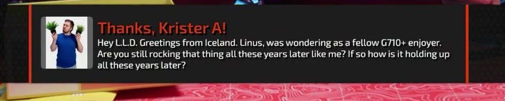 Hey L.L.D. Greetings from Iceland. Linus, was wondering as a fellow G710+ enjoyer.