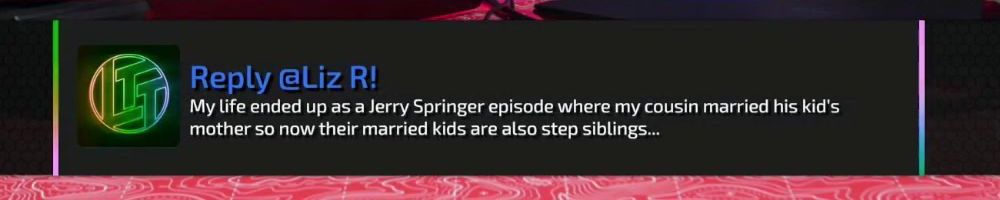 My life ended up as a Jerry Springer episode where my cousin married his kid's mother so now their married kids are also step siblings...