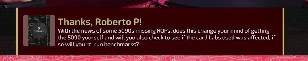 With the news of some 5090s missing ROPs, does this change your mind of getting the 5090 yourself and will you also check to see if the card Labs used was affected, if so will you re-run benchmarks?