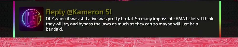 OCZ when it was still alive was pretty brutal. So many impossible RMA tickets. I think they will try and bypass the laws as much as they can so maybe will just be a bandaid.