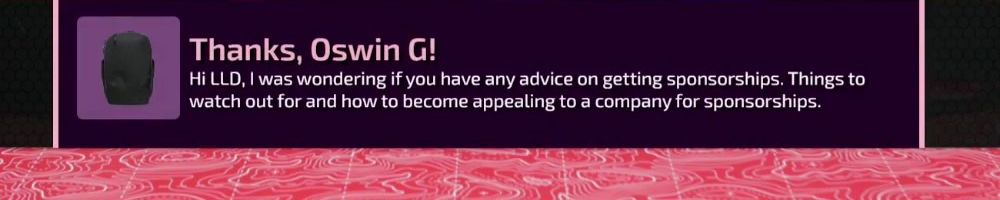 Hi LLD, I was wondering if you have any advice on getting sponsorships. Things to watch out for and how to become appealing to a company for sponsorships.