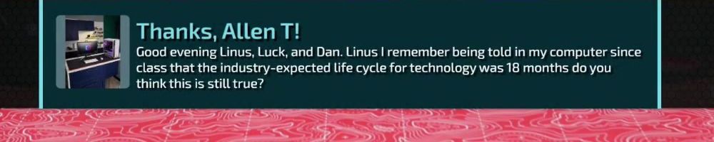Good evening Linus, Luck, and Dan. Linus I remember being told in my computer since class that the industry-expected life cycle for technology was 18 months do you think this is still true?