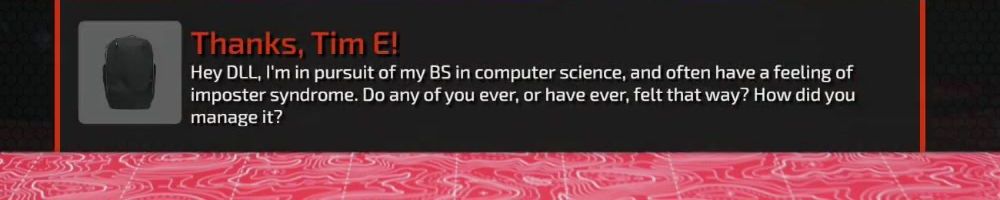 Hey DLL, I'm in pursuit of my BS in computer science, and often have a feeling of imposter syndrome. Do any of you ever, or have ever, felt that way? How did you manage it?