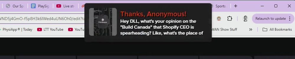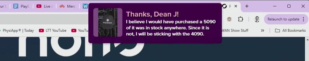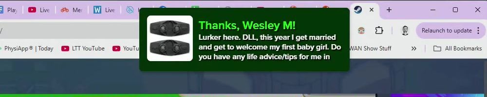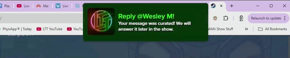 Hint: Use CTRL + F to search messages in this show, or use Whenplane's WAN Show Search tool to search for messages in all shows.