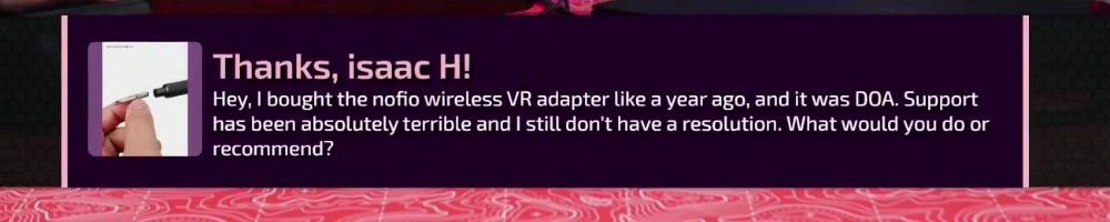 Hey, I bought the nofio wireless VR adapter like a year ago, and it was DOA. Support has been absolutely terrible and I still don't have a resolution. What would you do or recommend?