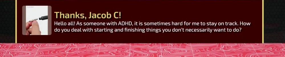 Hello all! As someone with ADHD, it is sometimes hard for me to stay on track. How do you deal with starting and finishing things you don't necessarily want to do?