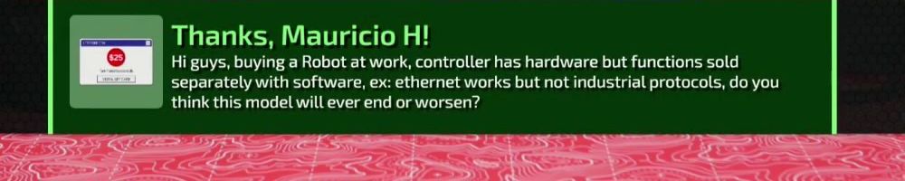 Hi guys, buying a Robot at work, controller has hardware but functions sold separately with software, ex: ethernet works but not industrial protocols, do you think this model will ever end or worsen?