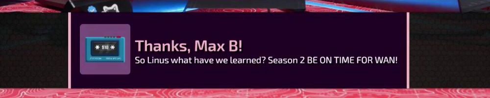 Thanks, Max B! So Linus what have we learned? Season 2 BE ON TIME FOR WAN!