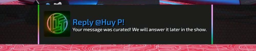 Reply @Huy P! Your message was curated! We will answer it later in the show.