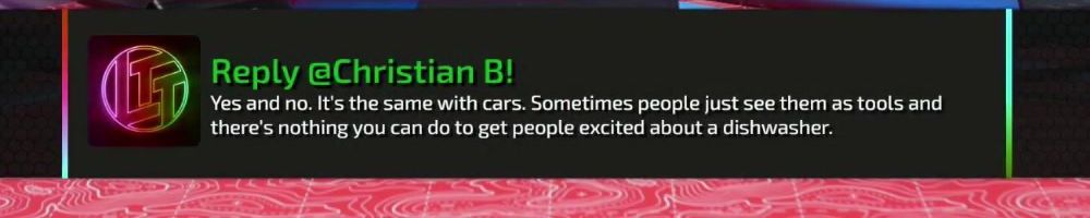 Reply @Christian B! Yes and no. It's the same with cars. Sometimes people just see them as tools and there's nothing you can do to get people excited about a dishwasher.