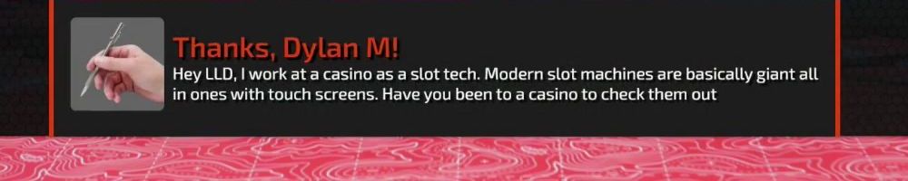 Thanks, Dylan M! Hey LLD, I work at a casino as a slot tech. Modern slot machines are basically giant all in ones with touch screens. Have you been to a casino to check them out