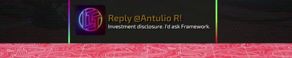 Reply @Antulio R! Investment disclosure. I'd ask Framework.