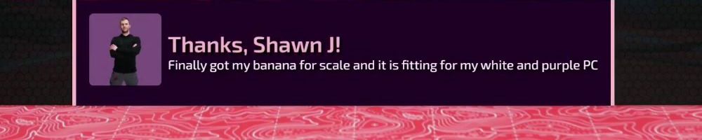 Thanks, Shawn J! Finally got my banana for scale and it is fitting for my white and purple PC