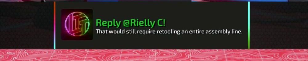 Reply @Rielly C! That would still require retooling an entire assembly line.