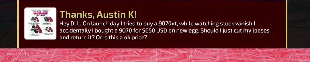 Thanks, Austin K! Hey DLL, On launch day I tried to buy a 9070xt, while watching stock vanish I accidentally bought a 9070 for $650 USD on new egg. Should I just cut my looses and return it? Or is this a ok price?