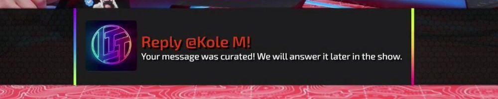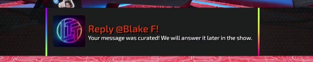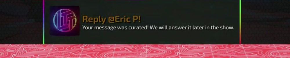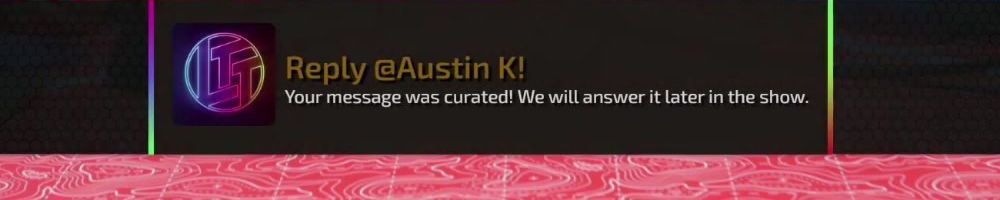 Reply @Austin K! Your message was curated! We will answer it later in the show.