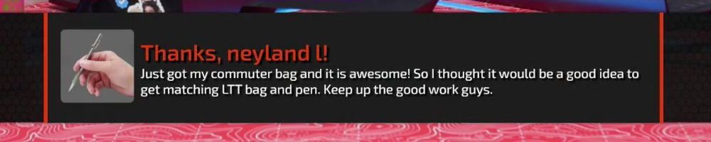 Thanks, neyland l! Just got my commuter bag and it is awesome! So I thought it would be a good idea to get matching LTT bag and pen. Keep up the good work guys.