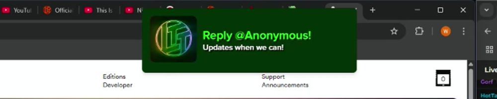 Reply @Anonymous! Updates when we can!