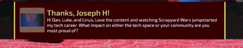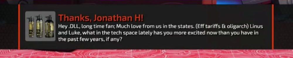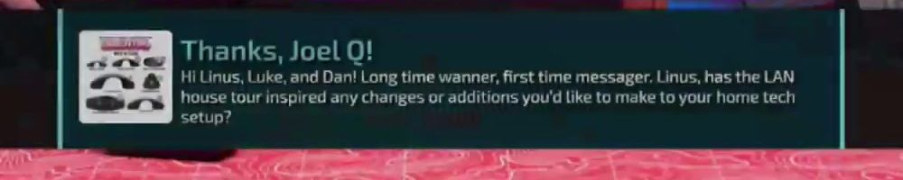 Thanks, Joel Q! Hi Linus, Luke, and Dan! Long time wanner, first time messager. Linus, has the LAN house tour inspired any changes or additions you'd like to make to your home tech setup?