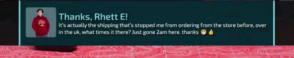 Thanks, Rhett E! It's actually the shipping that's stopped me from ordering from the store before, over in the uk, what times it there? Just gone 2am here. thanks 😊👍