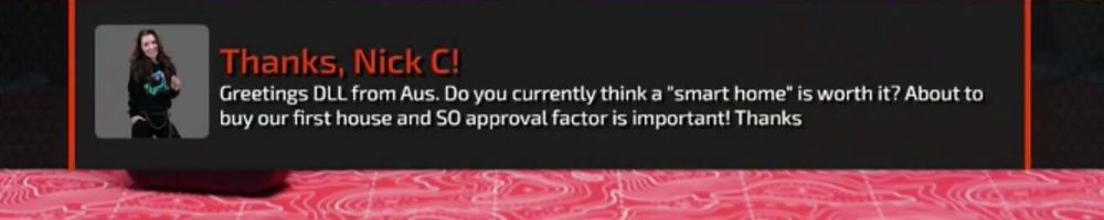 Thanks, Nick C! Greetings DLL from Aus. Do you currently think a "smart home" is worth it? About to buy our first house and SO approval factor is important! Thanks