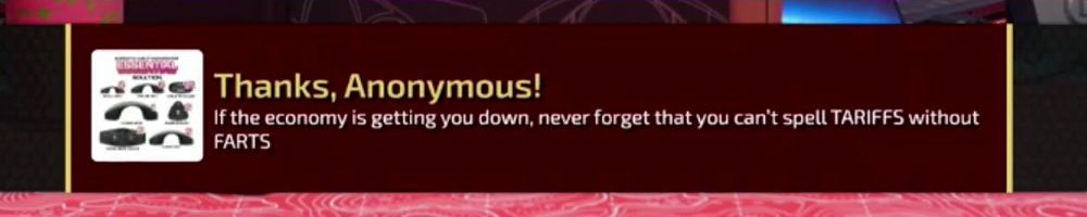 Thanks, Anonymous! If the economy is getting you down, never forget that you can't spell TARIFFS without FARTS
