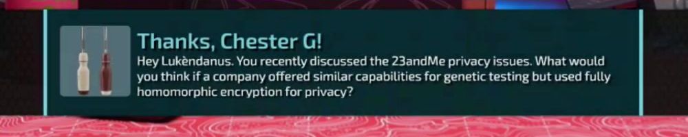 Thanks, Chester G! Hey Lukéndanus. You recently discussed the 23andMe privacy issues. What would you think if a company offered similar capabilities for genetic testing but used fully homomorphic encryption for privacy?
